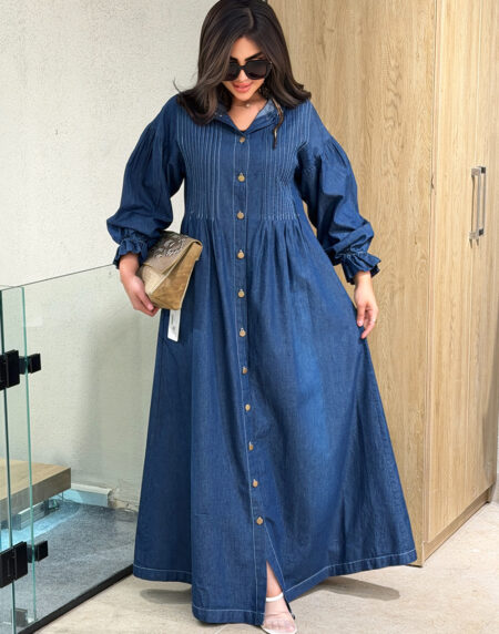 denim puff dress